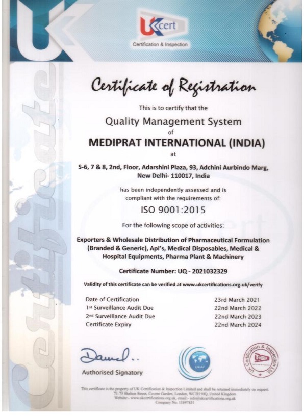 We are an ISO 9001-2015 AND GDP APPROVED COMPANY